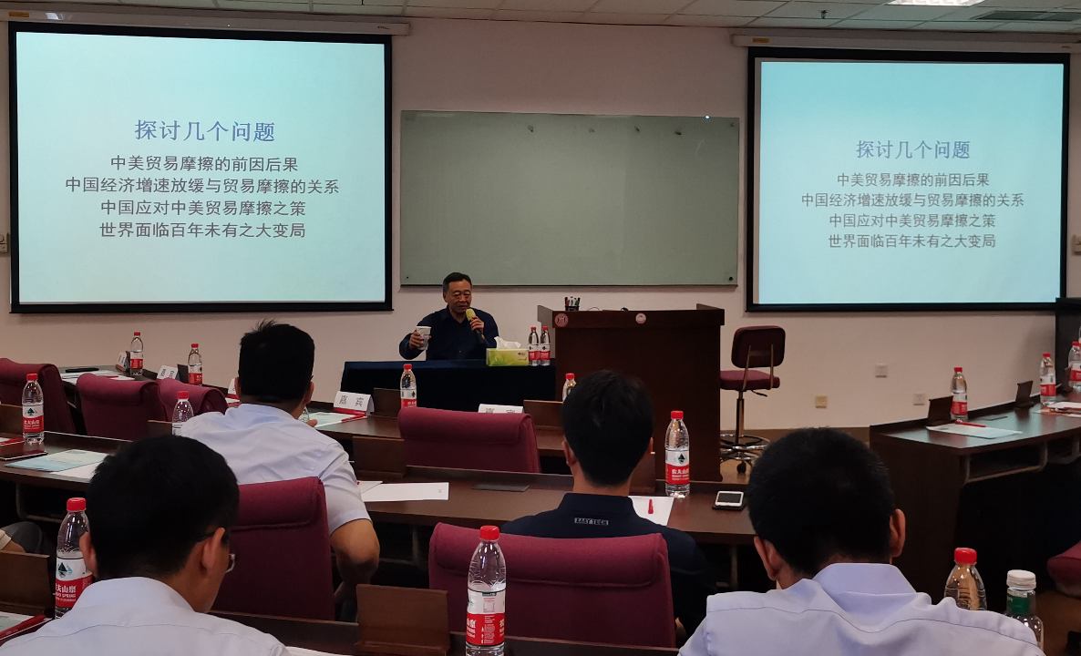 黄卫平教授此次就中美贸易摩擦与当前中国经济走势从经济学视角进行了剖析。黄教授是中国人民大学世界经济研究中心主任,中国人民大学经济学院让·莫奈讲席教授,曾经为中央政治局集体学习进行过讲解,国务院特殊津贴获得者。黄教授引用丰富的案例,分析了中央经济工作会议政策,透析了中国宏观经济前沿、中美贸易战前因后果等热点问题。解读了中美贸易摩擦和我国经济的发展趋势,使同学们对宏观性理论有了深层次的了解。