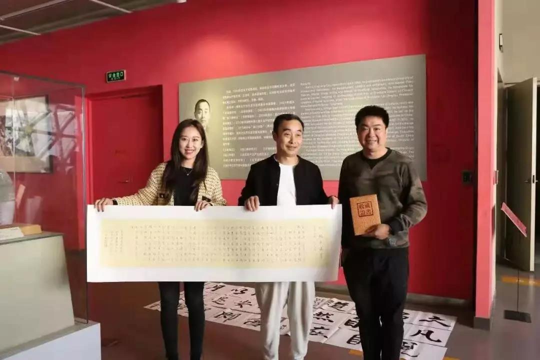 洛阳校友、中书协会员、魏碑艺术研究专家沅雒先生拿出临摹和创作的魏碑书法作品,与大家一起探讨魏碑书法技艺。随后,沅雒先生向龙门博物馆捐赠了个人著作:《入碑随笔——龙门魏刻六十品》,EMBA文化收藏协会会长侯毅先生向龙门博物馆捐赠了文创产品:弘一法师书写的《心经》,馆长王迪先生接受捐赠并颁发收藏证书。