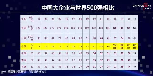 我对中国企业的关注也已经达到了20年之久。应该说,在20年前,我们尚未有一家企业能够登上世界舞台。而从1995年到2002年,我们从3家发展到了11家,然后逐年增加,发展至今,已经有109家荣登世界500强榜单。从数字上看,我们经过几十年的奋斗和努力,中国大企业的成长已经迅速改变了世界经济版图,具有了相当的实力和格局。如果能够像美、日企业那样发展的话,我们还应该有百八十家上榜,还有很大的空间。所以我想,我们企业的未来一定是非常美好的。