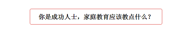 成功:家庭教育是根本。近几年我们国家非常重视家庭教育。尤其习近平总书记多次提出家风、家庭教育。前年习近平总书记说家庭不单是一个人身体的住所,更是一个人灵魂和精神的归宿。家风好,家道兴盛,家风不好,家道衰败。此后中央电视台专门策划一档节目叫《家风》。