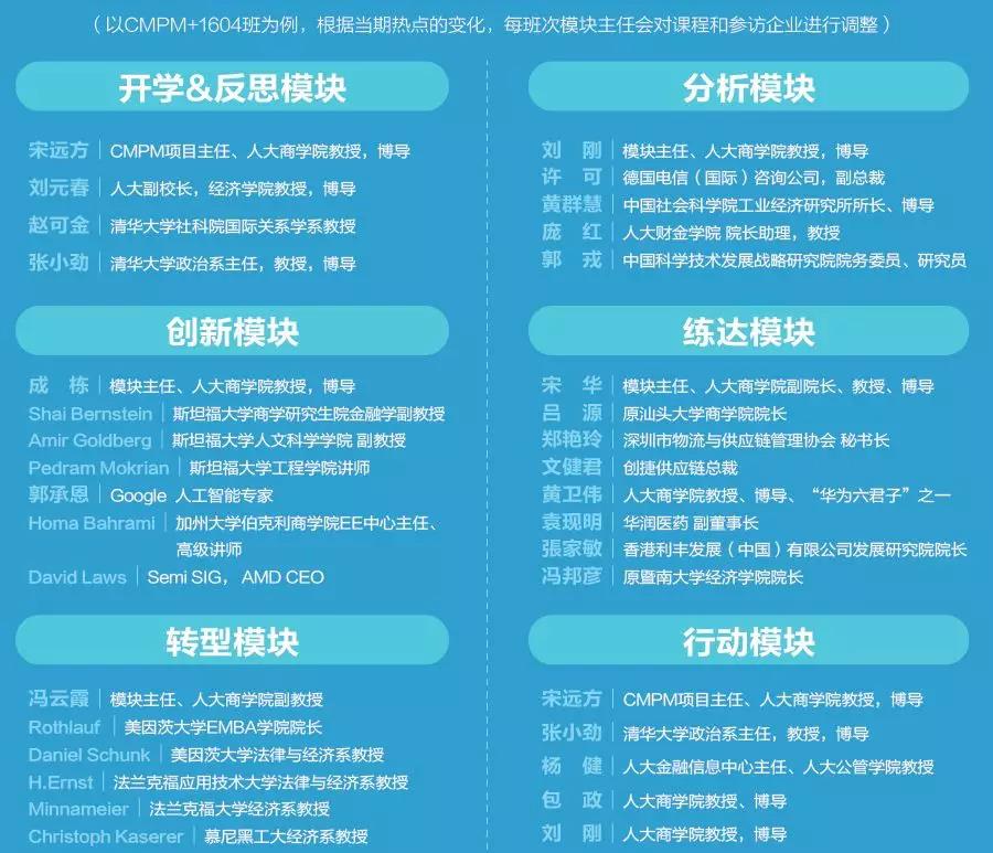 人大商学院后E项目《中国实践管理教育项目》Chinese Master In Practicing Management(以下简称CMPM+)完美解决优秀企业家学员的问题和困扰,值得您再次投入时间和精力好好学习和体会。