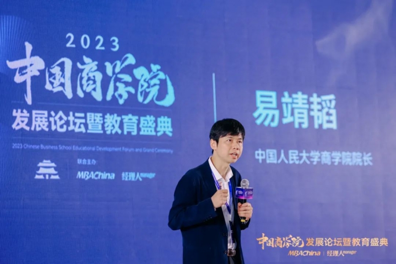 中国人民大学商学院院长、党委副书记易靖韬受邀出席此次盛典,作“案例研究:构建中国自主的知识体系的路径”主题报告。同时,易靖韬院长凭借其在商科教育领域内作出的突出贡献,荣获“2023年度中国商学院杰出院长奖”。